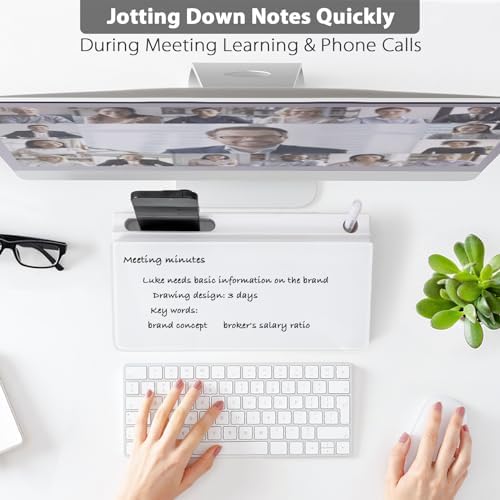 Small Glass Desk Whiteboard, Dry Erase Desktop White Board with Storage Caddy to-do List Desk Buddy Memo Notepad for Office, School and Home Office Accessories Supplies