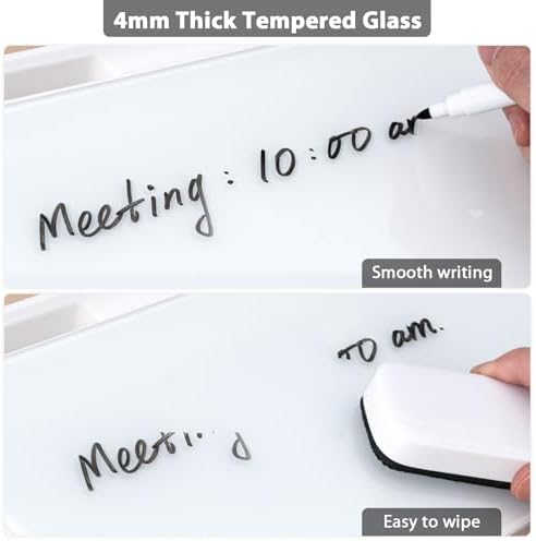 Smooth Writing & Easy to Wipe: The 4mm thick high-tempered glass surface ensures smooth writing and easy erasing with the included eraser, providing a hassle-free experience.
