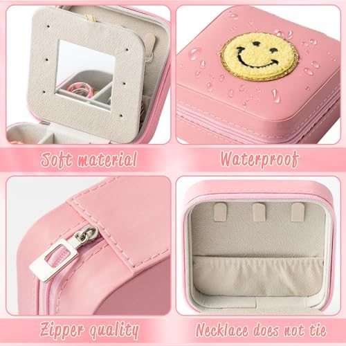 Small Preppy Travel Jewelry Case for Women Mini Jewelry Organizer for Traveling Preppy Travel Jewelry Box for Ring Earring Necklace Bracelet Pendant Gift for Mom Girls Lovers
