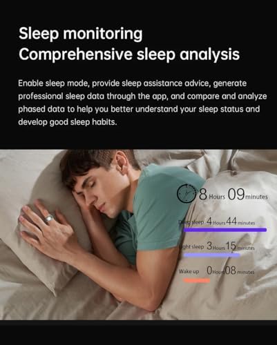 Sleep Mate:Smart Ring is about 6.8 grams and very comfortable to wear, making it an ideal sleep tracker companion. Designed to help you understand the various sleep stages such as deep sleep, rapid eye movement sleep, light sleep and wakefulness, where different metabolic processes occur in the body for growth, repair, recovery and maintenance.