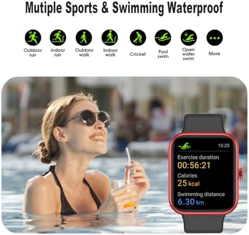 【Swimming Waterproof Watch】 Waterproof up to 50 meter, allowing worry-free use during swimming and water activities. More additional functions include stopwatch, pedometer, breathing exercises, music control, photo control, weather forecast, women’s health reminder, mobile phone search, etc.