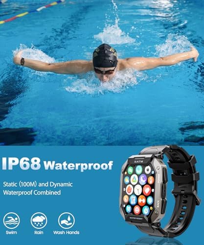 【Higher Quality & IP68 Waterproof】 This Upgraded smart watch comes with 2.01” HD Display. And special composite case makes this smartwatch scratchproof, dustproof and rugged, making it a reliable companion for indoor and outdoor adventures. This waterproof watch can be submerged in water up to 100 meters under static conditions.