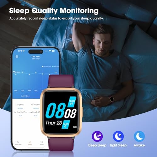 All-day Health Monitoring: This smartwatch can monitor your heart rate throughout the day, you can also use it to monitor your real-time blood oxygen and blood pressure saturation. Our smartwatch will automatically track your sleep, record light sleep, deep sleep, and awake time, helping you adjust your lifestyle and stay healthy.
