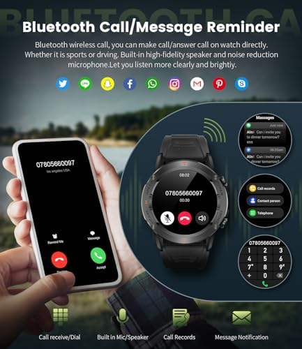 【One-touch Bluetooth Connection】The men’s smart watch features built-in speakers and microphones,enabling you to make and receive calls and enjoy music.By pairing the smartwatch with your mobile phone,you can receive phone calls,messages,and notifications from SNS notifications like Facebook,Twitter,WhatsApp,Instagram,Skype,and more directly on your wrist.Additionally,the smartwatch includes a vibration reminder function,ensuring that you stay connected and never miss any crucial information.