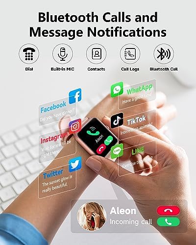 【BLUETOOTH CALLS & SMART NOTIFICATIONS】The smartwatch comes equipped with a speaker and microphone, on-wrist Bluetooth calls, view call logs, and set up frequently used contacts. It vibrates to notify you when there are social media APP messages, incoming calls, or text messages, ensuring you stay connected even when away from your phone.