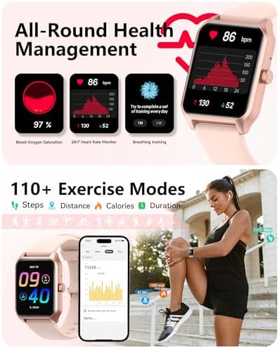 Smart Watch for Women iPhone & Android Compatible, 1.8″ Fitness & Sleep Tracker with Calls/Text, Smartwatch IP68 Waterproof, 110+ Sport Modes, Heart Rate/SpO2 Monitor