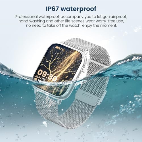 Smart Watches for Women,1.83″ Fitness Tracker with Answer/Make Calls/Sleep Monitor/IP67 Waterproof /SpO2 Fitness Tracker/Sleep Monitor Watch for Android iOS (Silver)