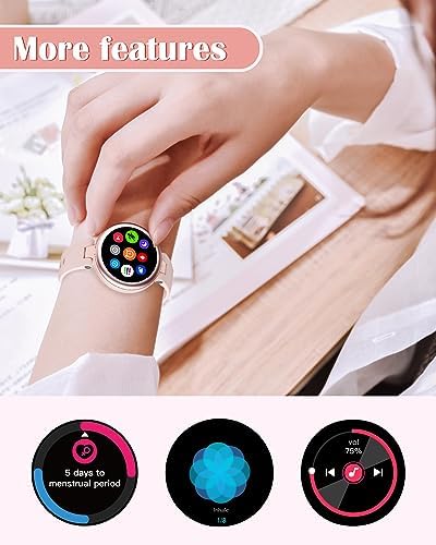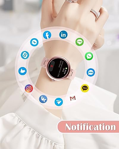 Smart Watches for Women Compatible with iPhone/Android Phones, Slim Designed Round Women’s Watch Fitness Tracker with Heart Rate/Blood Oxygen Monitor Pedometer Waterproof Pink