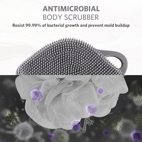 ❤【Hygienic Silicone Body Scrubber】The body scrubber is made from 100% food-grade silicone and is infused with silver and zinc ions. It’s more hygienic, comfortable and durable than loofahs or brushes made from other materials, ensuring a healthy and long-lasting cleaning experience.