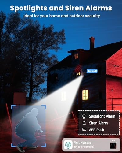 [Multi-Alarms & Audio Warning and Strobe Lights] The wireless security camera outdoor offer 3 alarm types: siren, spotlights, and app push. Deter unwanted visitors with warning spotlights at night and playback caught video clips as evidence from a micro SD card (up to 128GB, not included) or cloud storage (6S free playback). You can also have a talk in real time with two-way audio