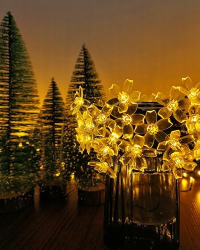 Solar String Lights for Outside,50 LED Solar Flower String Lights Outdoor Waterproof,Solar Powered Outdoor Decorative String Lights for Yard, Lawn, Fence, Flower Garden, Christmas Tree