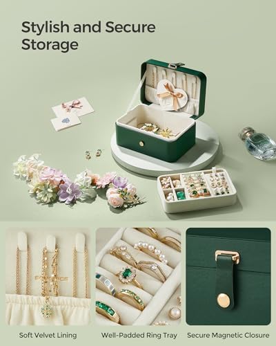 Be the first to review “SONGMICS Jewelry Box, Travel Jewelry Case, 2-Layer Jewelry Holder Organizer, 4.6 x 6.3 x 3 Inches, Portable, Versatile Earring Storage, for Larger Accessories, Gift Idea, Forest Green UJBC166C01”