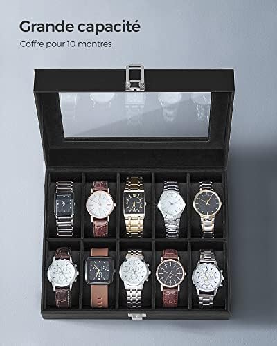 Be the first to review “SONGMICS Watch Box, 10-Slot Watch Case with Large Glass Lid, Removable Watch Pillows, Watch Box Organizer, Father’s Day Gifts, Black Synthetic Leather, Black Lining UJWB010B02”