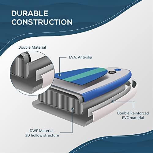 Soozier Inflatable Stand Up Paddle Board Ultra-Light Yoga SUP with Non-Slip Deck Pad, Premium Accessories, Waterproof Bag, Safety Leash and Hand Pump for Surfing, Touring and Fishing, Blue