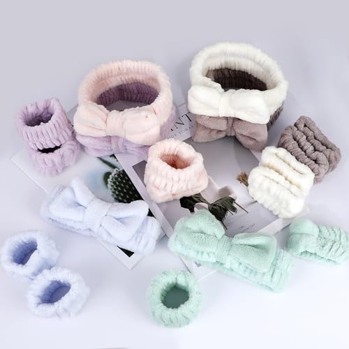 【Face Wash Headband And Wristband Set Strong Water Absorption】: The face wash wristbands can effectively keep the water from running down your arms and getting your sleeves all wet, while the spa headband keeps the hair out of your way while you washing face, makeup, yoga sport, reading, working at home, keep your hair dry while washing face, providing comfort during your skin care routine. The spa headband and wristband set is reusable and machine washable, easy to wear and clean.