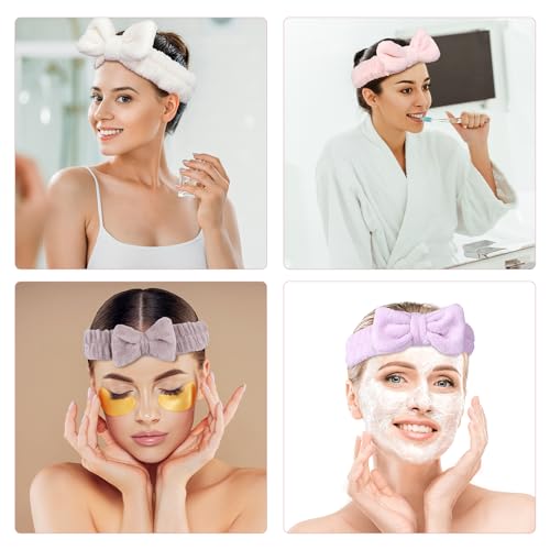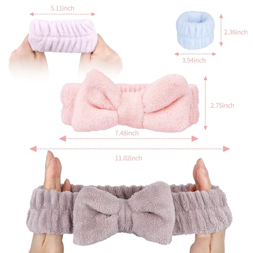 【Skincare Headband With Bow】Adorable bowtie is designed on the top of headband, which makes you extraordinary sweet and cute. The fluffy headband works effectively to keep your hair during your cleansing process, providing comfort during your skin care routine. Spa headband and wristband Set with nice elasticity to fit most people’s head.