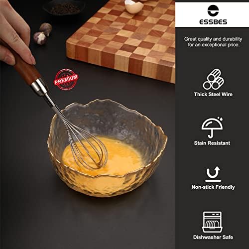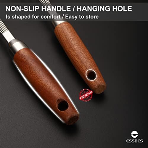 ✨WOODEN HANDLE DESIGN: Whisks for cooking adopts Sapele wood handle, which is full of high-grade, ergonomic design,more comfortable to hold.Wire whisk will not make your hands and wrists tired, and can be reused to meet your different needs.