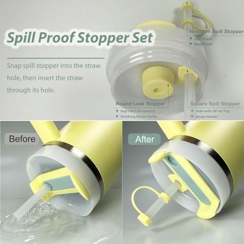 Package Includes – The stanley cup accessories set includes 2 hexagon spill stoppers, 2 square spill stoppers, and 2 round lid leak stoppers, 1 pcs lemon straw topper and 1 pcs flowers straw cover, 1pcs silicone boot sleeve, specially designed for Stanley Adventure Quencher 40oz and Stanley IceFlow 20oz 30oz tumblers water bottles. Straw covers match for 9-10mm straws.