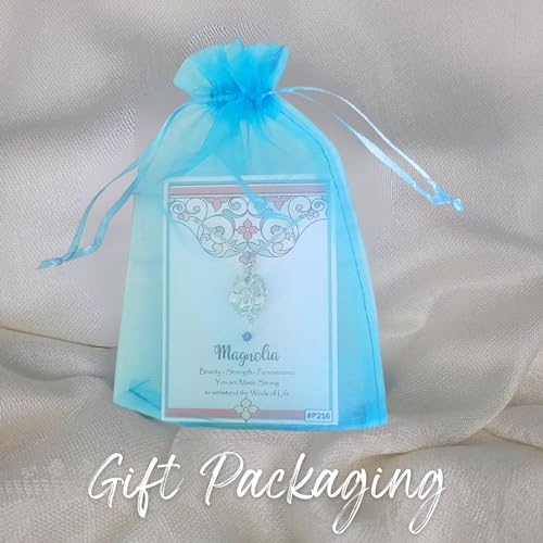 [ Lovely Gift Packaging]: This beautiful Magnolia flower charm necklace come in a chic organza gift bag with an inspirational ” Beauty – Strength – Perseverance – You are made Strong to withstand the Winds of Life” card. A short Artist bio on the back add artisan charm to this wonderful gift.