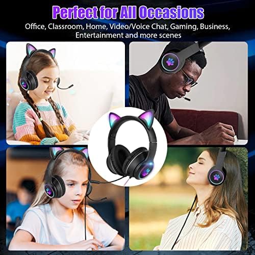 Stereo Gaming Headset for PS4 PC PS5 Xbox One Nintendo Switch, Wired Cat Ear Headphones with Mic, Surround Bass, Soft Earmuffs, Noise Cancelling Over Ear Headphones for Girls Kids, Black