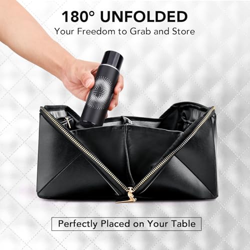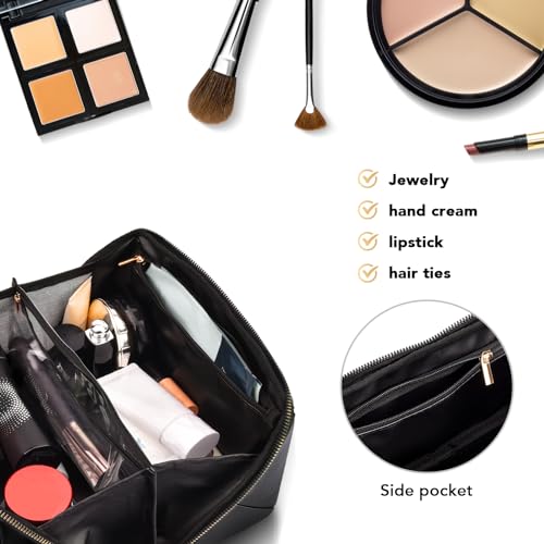 【EASIER ACCESS DESIGN】The 180º extra-large opening flat makeup bag that moves as fast as you do! It opens flat so you can see all your makeup at a glance – and then quickly scrunch things closed when you’re ready to head out the door. No more clutter – everything has its place!
