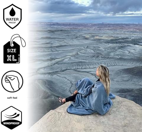 SUITEDNOMAD Large Waterproof Outdoor Stadium Blanket, Windproof and Warm Double Sided Fleece Throw, Great for Cold Weather Camping,Picnic,Sports,Festivals,Dogs