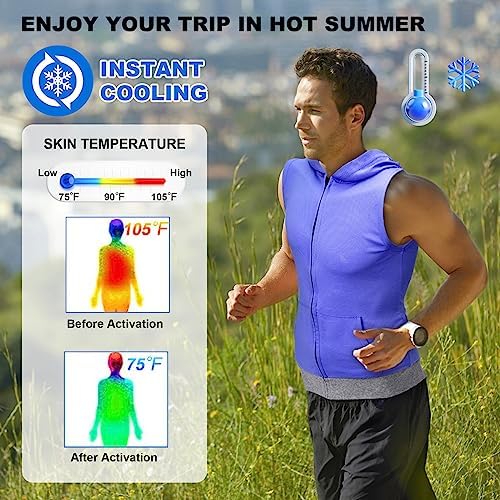 Evaporative cooling vest: Are you still distressed about having no air conditioner at home or going out in a hot day? Well, you need a COOLING VEST!Soak the ice vest cooling in ordinary tap water or cold water for 30 seconds to make the fabric absorb water fully. Then wring it heavly without water drops, and you can enjoy instant coolness and comfort for hours after you wear it. Quick dry, coolable and reusable.