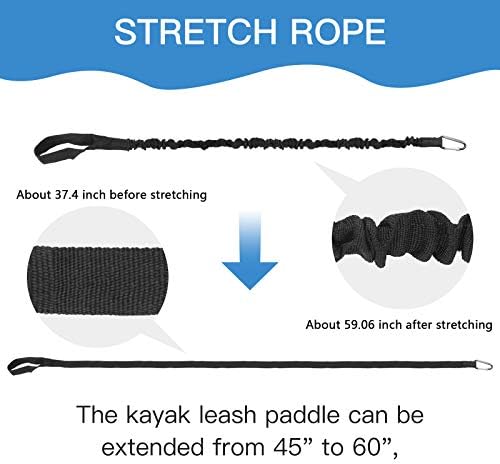 【STRETCH DESIGN】Unique and beautiful lightweight accordion webbing design .The kayak leash paddle can be extended from 37.4 inch to 59 inch, which is long enough for most usage.21″ of elongation keeps you reach what you need when paddling or reeling to a large extent.Excellent kayak accessory to allow flexibility and maneuvering.