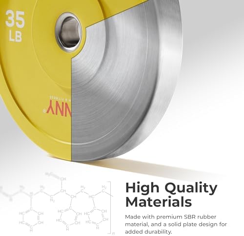 【SAFETY CONSTRUCTION】Built for safety and constructed with high-quality SBR to minimize shock and noise. Prevent the loosening of your barbell collars and center rings with these low dead bounce bumper plates.
