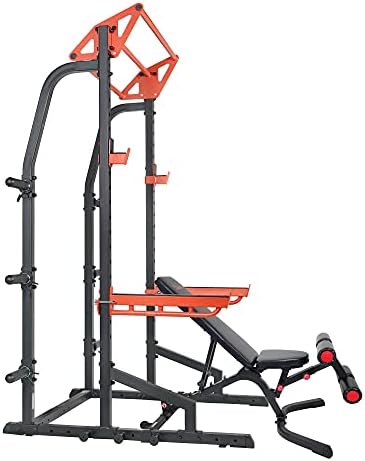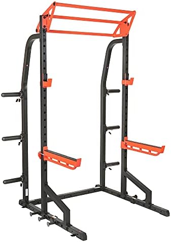 Sunny Health & Fitness Power Zone Half Rack Power Cage with Lat Pull Down Attachment