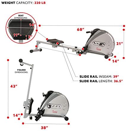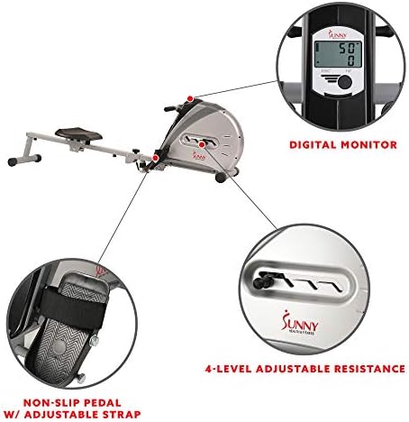 Sunny Health & Fitness Rowing Machine Rower Ergometer with Digital Monitor, Inclined Slide Rail, 220 LB Max Weight and Foldable – SF-RW5606