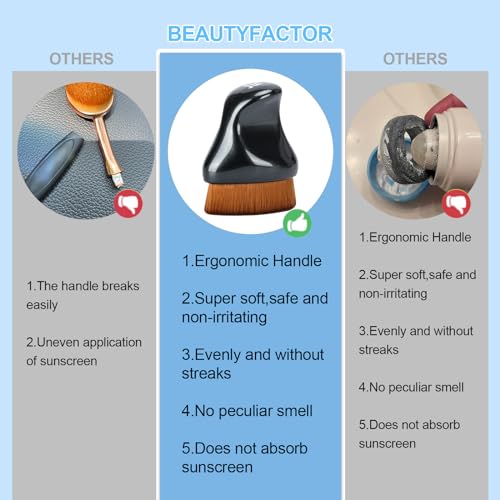 【Soft & Dense】BEAUTYFACTOR sunscreen brush is made up of 200,000 high-quality fiber hairs and can be applied to large areas quickly.The sunscreen applicator can accurately control the amount of sunscreen and apply it evenly to achieve perfect sunscreen protection.The sunblock brush won’t fall off easily and is reliable for long-term use,the best summer essentials for you.