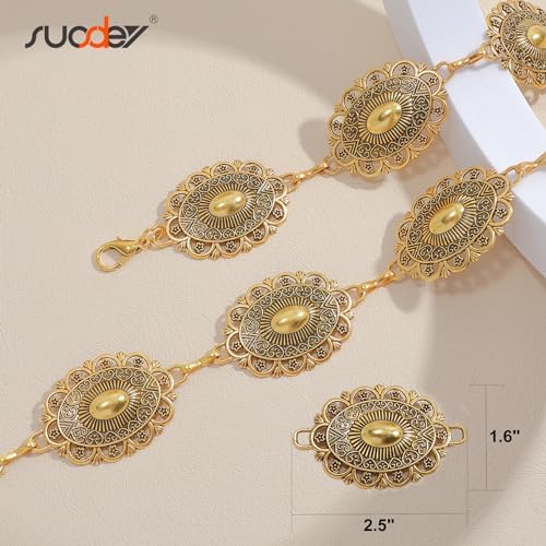 SUOSDEY Western Concho Chain Belt for Women Cowgirl Waist Belt for Country Concert Outfit Dresses Jeans Turquoise Metal Belts