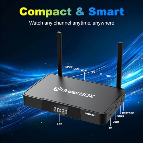 Super Smart TV Bundle S-5 Box P R O,4GB + 32GB Storage,with Voice Remote,Wireless Speaker*1,Bluetooth,2T2R,Dual Band Wifi,Quad-Core,2T2R,6K HDMI,Quad-Core,2024 Newest Super Saver Box,Easy Setup Guide