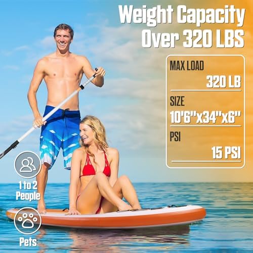 🏄【EXTRA WIDE 34″ PADDLE BOARDS, GOOD FOR 2 PEOPLE AT ONE TIME】The SurfStar extra wide Paddle Board is 1 to 2 inches wider than other inflatable stand up paddle boards and has a weight capacity of more than 320 lbs, It is even suitable for 2 people paddling on board at once. You can also use it as a Fishing Paddle Board or Yoga Board, and the extra-wide design will give you an incredibly stable experience.