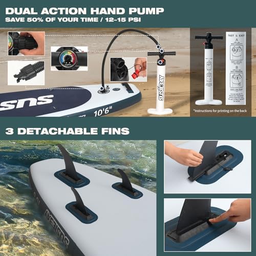 SUSIEBAY Inflatable Paddle Board, 10‘6“ Stand UP Paddle Board for Adult with SUP Accessories, Wide Stance for All Levels, Traveling Board, Sup Board,10L Waterproof Bag, Double Action Pump