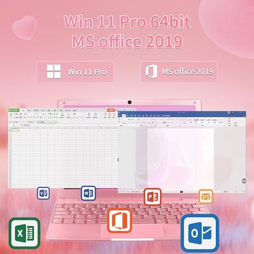 Svikou【Win11 Pro/Office 2019 10.1-inch Mini Laptop Celeron N4020, Quad Core 8GB RAM, 256GB SSD, Built-in Webcam, WiFi, HDMI, Easy to Carry, Suitable for Children and Adults (Rose Gold, 8G+256G)