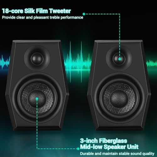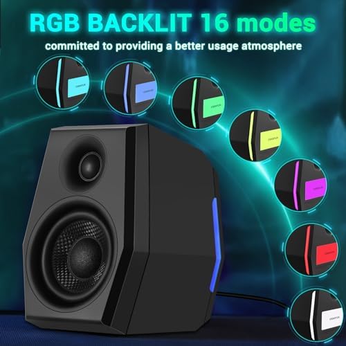 【SUPERIOR SOUND】36W 2.0 HiFi gaming computer speakers with 3-inch glass fiber mid-low speaker unit and 18-core silk film tweeter can produce finer sound, bringing clear and transparent sound quality, allowing you to experience different sound levels and details. By adding dynamic 3D surround sound effects through software, 2.0 speakers can also provide good stereo sound.