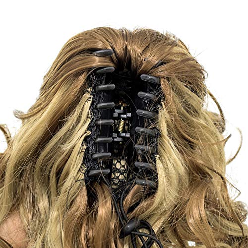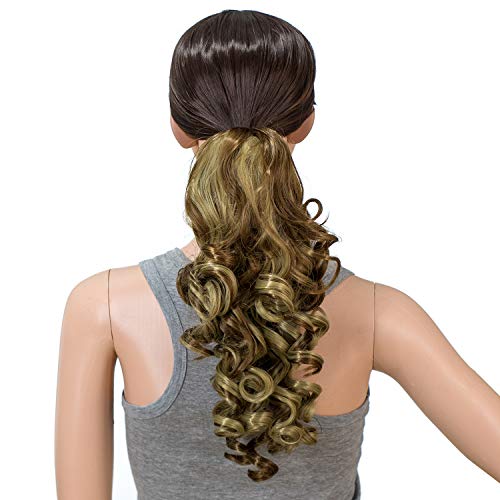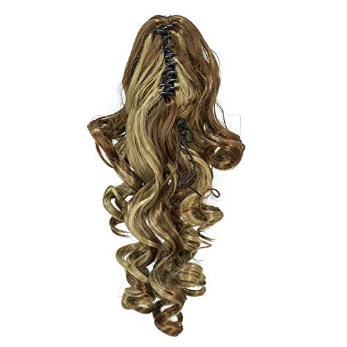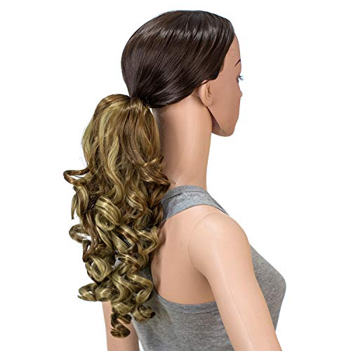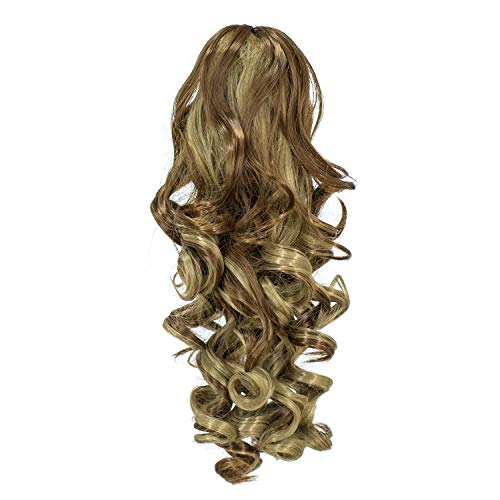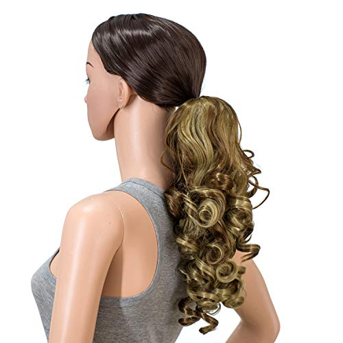 SWACC 12-Inch Short Screw Curls Claw Clip Ponytail Extensions Synthetic Clip in Drawstring Curly Ponytail Hairpiece Jaw Clip Hair Extension (Light Brown/Beige Highlights-12H24#)