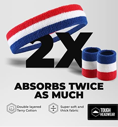 Sweatbands Set – Head & Wrist Sweat Bands – Terry Cloth Sweatbands for Tennis, Working Out, Sports, Basketball, Gym, Exercise – Headband & Wristbands for Men & Women – Stretchy & Soft Cotton