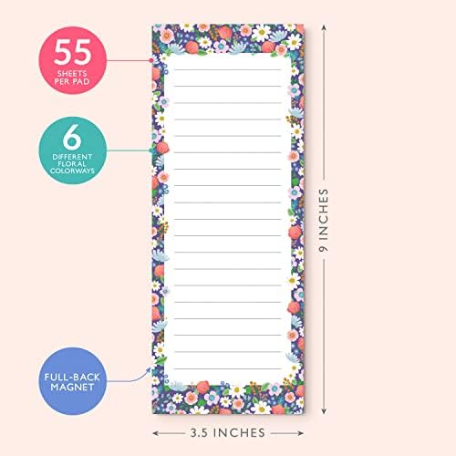Sweetzer & Orange 6-Pack Magnetic Grocery List for Fridge (Floral) – 3.5” x 9” Memo Notepad for Shopping, Locker, Filing Cabinet, to Do, Appointment Reminders, Meal Plans | 55 Sheets Per Pad