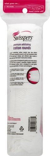 Size: 80 rounds | Style: Exfoliating Rounds. Swisspers Premium Exfoliating Rounds, 2 Distinct Raised Textured Surface, Cotton Facial Pads, 80 Count re-closable bag. Gently scrub away makeup and dull skin with our premium 100% cotton rounds. One side features a micro-bead surface for soft exfoliation, while the other side is embossed for light cleansing and applying lotions or astringents.
