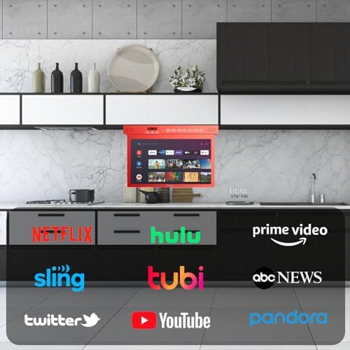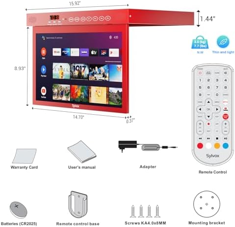 SYLVOX 15.6″ Smart Google TV Under Cabinet TV 1080P, Supports Rotate Flip Down WiFi & Wireless Connection, Storage Design for Kitchen Bedroom RV Yacht (Passion Red)