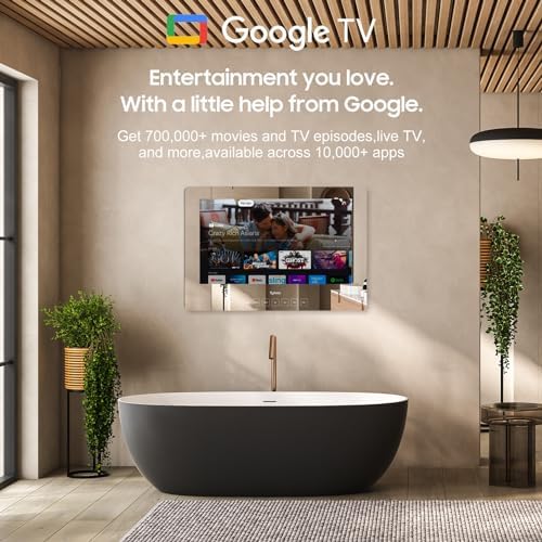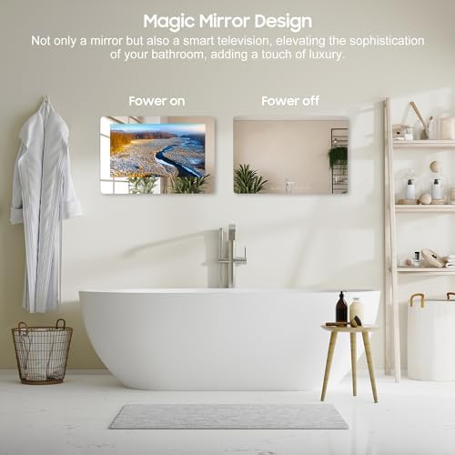Mirror Design: The bathroom TV functions as a mirror when turned off, and transforms into a smart TV when turned on. Perfect for bathrooms, showers, spas, hotels, and more. The sleek mirror design adds a touch of elegance to any space.