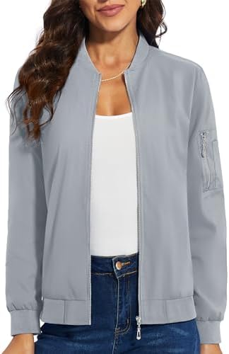 TACVASEN Women’s Bomber Jackets Lightweight Casual Jacket Full Zip Windbreaker Fall Jacket