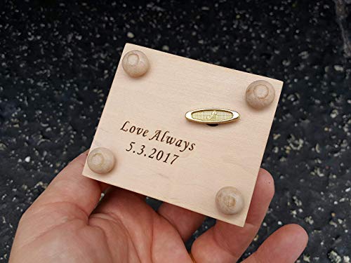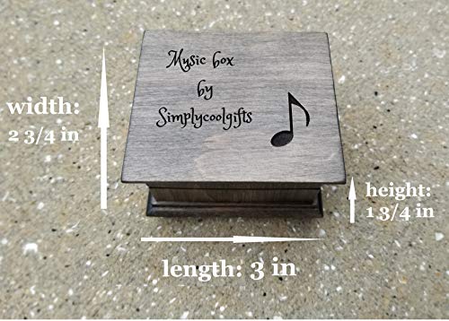 Engraved MUSIC BOX, works with a wind up music box movement. IT HAS THE WIND UP KEY ON THE BOTTOM, YOU NEED TO WIND IT UP FIRST, THEN LET IT GO AND IT PLAYS THE SONG OVER AND OVER FOR ABOUT 1-2 MINUTES! This post includes 1 wooden music box with the carving on pic 1 on it with your choice of color and song! Any further ideas, please convo me! The music boxes approximately measure: (W x D x H): 3 in x 2 3/4 in x 1 3/4 in! 7,6 cm x 7 cm x 4,5 cm and they’re made of maple wood. HOW TO ORDER: – choose a color (see pic 3) – choose the song – choose if you’d like to add a short personalization to the bottom of the box (max 15 characters, like a date with your initials see pic 4) and leave me a note – add to cart With the different motifs and melodies they’re suitable for any occasions: birthdays, baby showers, Valentine’s day, family reunions, graduations, Mother’s day or as bridesmaids gift, maid of honor gifts, mother of the brides gifts, ring bearer gift, thank you gifts or get well gifts as well! If you’d like to place a custom order, please keep that in mind that it takes up to 4-5 business days to get a music box done depending on the song of your choice and my work load! But even if you don’t have that much time, convo me and I’ll try to work it out!