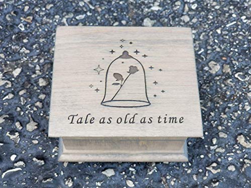 Tale as old as time gift, music box, Beauty and the Beast, Custom music box with a rose image and your choice of names engraved on the top with your choice of color and song
