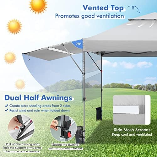 Tangkula 10×17.6 Ft Pop Up Canopy with Adjustable Dual Awnings, 2 Tier Outdoor Canopy Tent with 8 Stakes, 4 Ropes, 4 Sand Bags, Wheeled Bag, Easy Setup Instant Tent for Patio, Market, Picnic