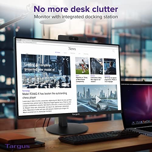 The 24-inch USB-C Docking Monitor with 100W Power Delivery seamlessly incorporates an ultra-compatible Targus docking station into a 24” LCD display to create a clutter-free workspace. Equipped with high-resolution graphics and multiple ports, this docking display is made for productive professionals and offers compatibility with most laptop brands. Features adjustable height, screen tilt angle, 360 degree rotation and portrait/landscape mode. You’ll love being able to have a horizontal and vertical monitor No need to fuss with messy wires and extra gadgets, you save valuable desktop real estate with the display’s built-in speakers, two microphones, and a 2M Pixel webcam. Plug other essential workspace peripherals like your favorite mouse, keyboard, or external hard drive into one of its 2 USB-A 3.2 Gen 1 ports. Top that off with 100W power delivery and a comfortable viewing design, and the DM4240PUSZ is the ultimate dock to keep you connected, powered, and productive. Need more display space? This docking station is equipped to easily daisy chain additional video and power to a Targus secondary monitor (DM4240SUSZ sold separately). Our docks work with Mac and PC platforms, as well as with Chrome OS, Android, and Linux. This broad compatibility supports flex working applications like hoteling and hot-desking and provides a future-proof solution that eliminates the need for replacement during every laptop refresh. A single USB cable easily expands workstations with the addition of multiple displays and your go-to peripherals. So, there’s no need to plug in accessories each time you come and go from your desk. Universal docking stations help free up desk space and keep cables tangle-free.