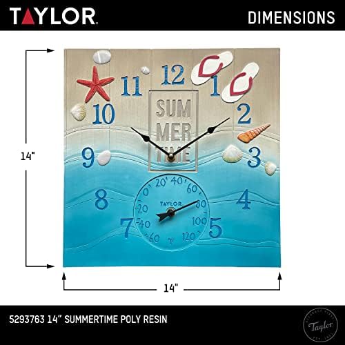 Taylor Summertime Poly Resin Clock and Thermometer,14 Inch, Blue